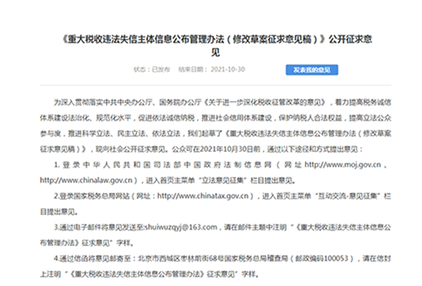 9月30日,國家稅務(wù)總局發(fā)布《重大稅收違法失信主體信息公布管理辦法》(修改草案征求意見稿):